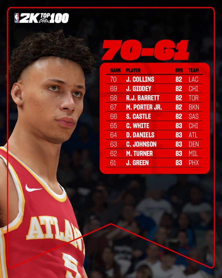 08月18日讯 NBA 2K官方公布了2K26初始能力值前71-100的名单,今日更新70-51的排名: